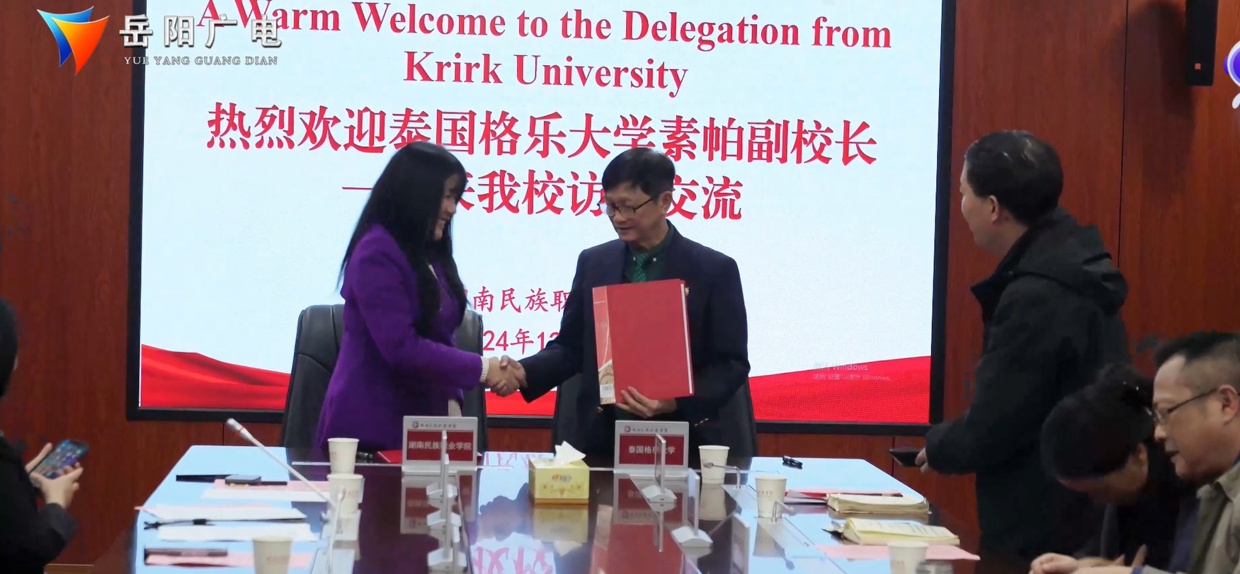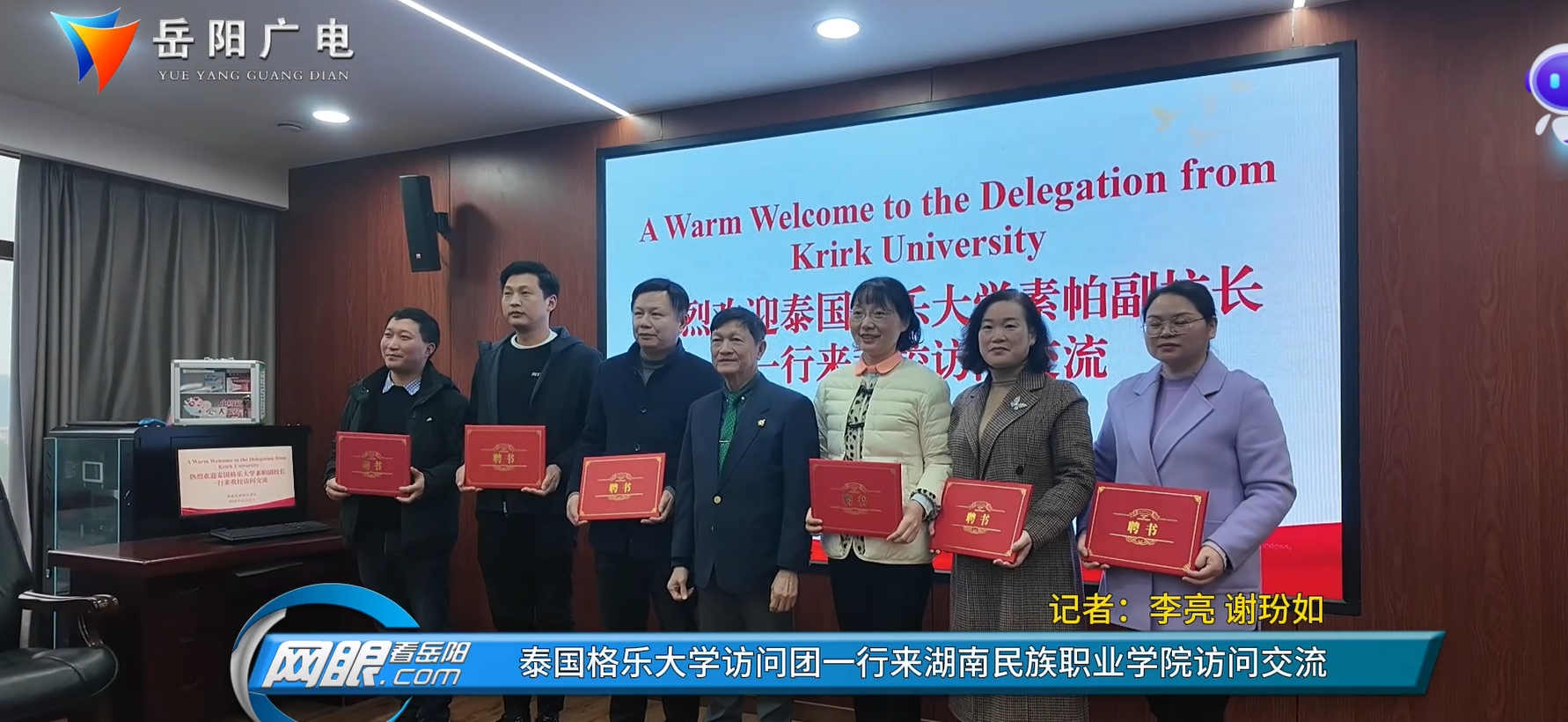 岳阳广电全媒体讯(记者:李亮 谢玢如)12月12日,泰国格乐大学访问团一行来湖南民族职业学院访问交流。