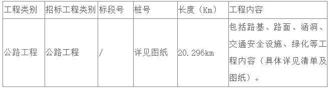 2.2 项目建设规模及招标范围:临湘市羊楼司镇至湖北新店公路建设本项目路线全长20.296km,按三级公路技术标准建设,标准路基宽度8m,路面宽度7m,双车道,设计速度30km/p,沥青路面结构。包括路基、路面、涵洞、交通安全设施、绿化等工程内容。现对该项目线路范围的施工进行公开招标。