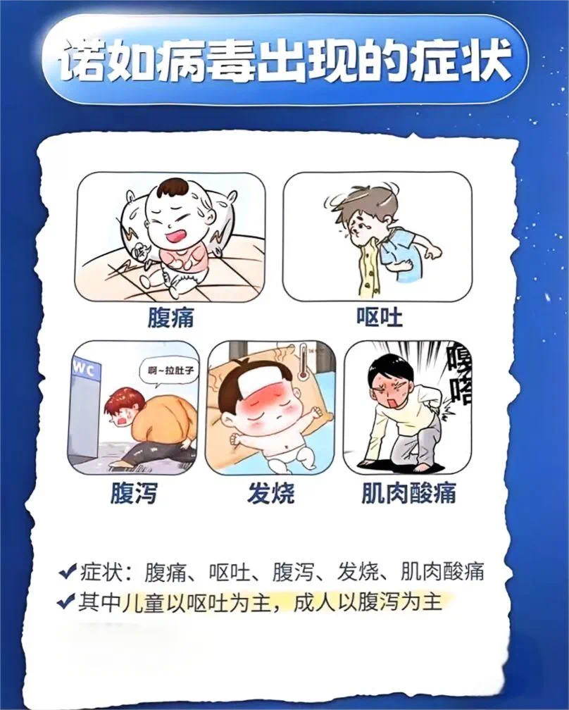 诺如病毒感染主要症状就是“上吐下泻”,成人、儿童均可感染,但具有差异,儿童以呕吐为主,成人以腹泻为主。儿童感染诺如病毒2-3天内会出现频繁呕吐,吃啥吐啥等症状,多伴有腹痛、发热(多为低热)、腹泻症状,大的小朋友可能出现浑身肌肉酸痛、乏力等表现及症状。
