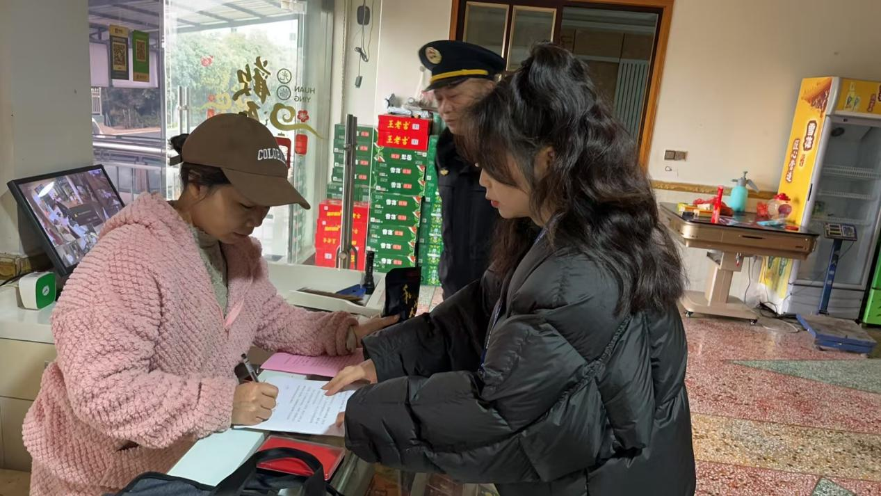 检查过程中,工作人员同步开展安全知识宣传,要求商户经营者签订烟花爆竹“打非”承诺书,并向周边群众发放宣传单页200余份,劝导群众树立文明新风尚,发现非法经营烟花爆竹等违法行为要积极举报,共同维护安全的社会环境。