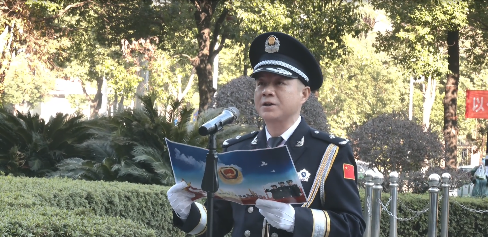 在分局前坪,升警旗仪式庄严举行。迎着朝阳,神圣的警旗冉冉升起,民警代表们整齐列队,高唱警歌、向警旗敬礼,并齐声宣读《公安机关人民警察誓词》,展现出新时代人民警察的昂扬风貌。