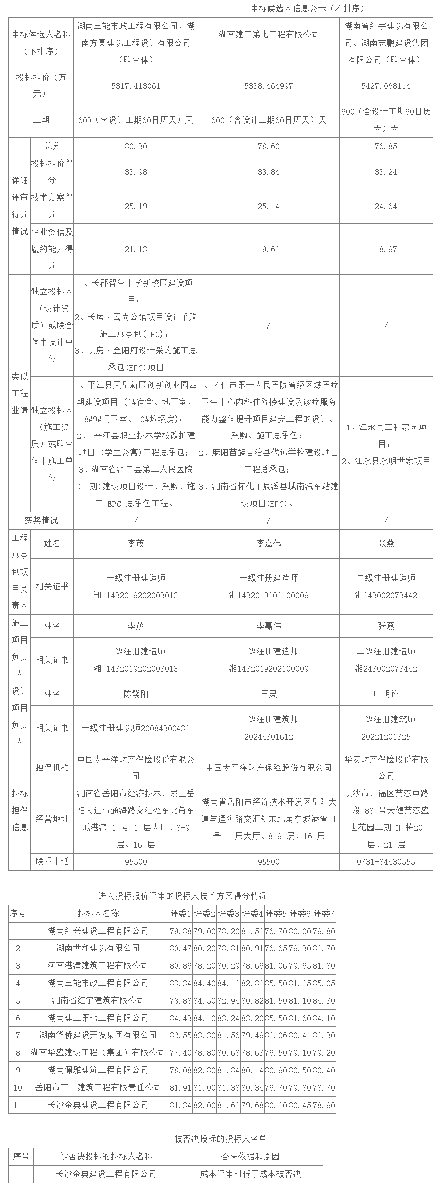 根据招标投标相关法律法规及招标文件的规定,平江县长寿镇维夏中学整体新建项目工程总承包评标工作已经结束,本项目采用“综合评估法”的评标办法,评标委员会推荐了以下3名中标候选人(不排序),现将相关信息予以公示。公示期2025年01月17日至2025年01月22日。