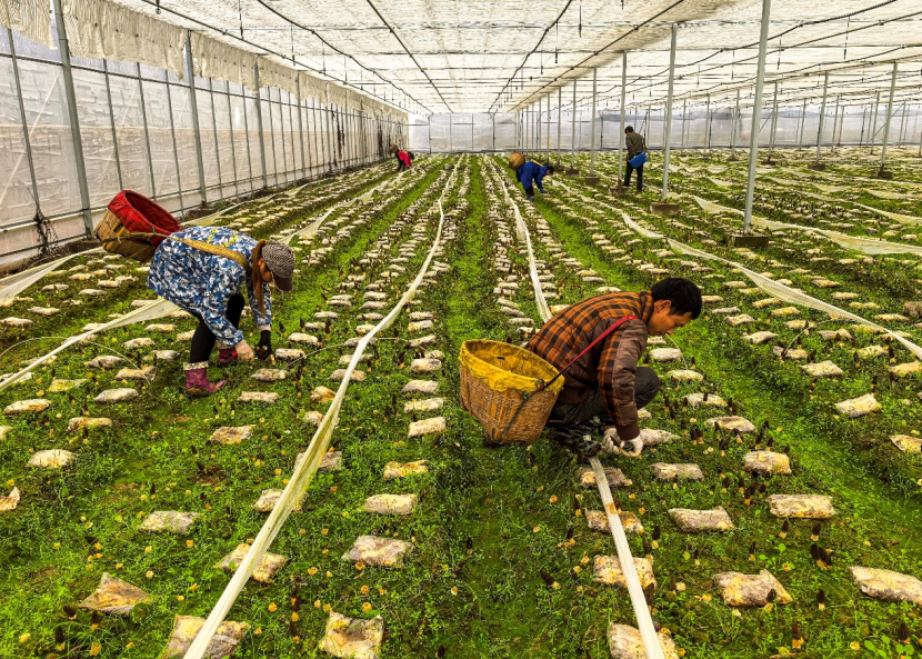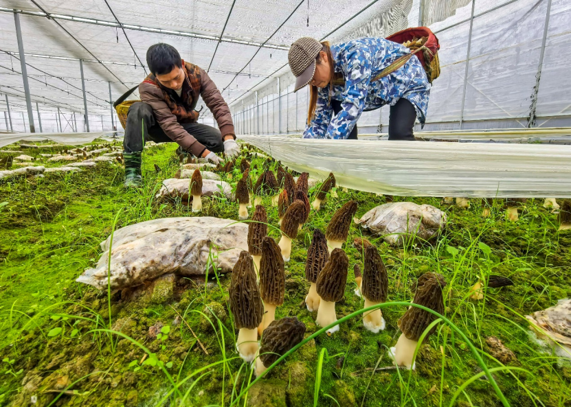 2月3日正月初六,当人们还沉浸在欢度新春的节日氛围中,岳阳屈原管理区营田镇育秧中心大棚内,却是一派热火朝天景象,一个个饱满鲜嫩的羊肚菌破土而出,布满大棚沃土,数十名社员正加紧采摘成熟的羊肚菌,然后将新鲜羊肚菌打包分发到全国各地。