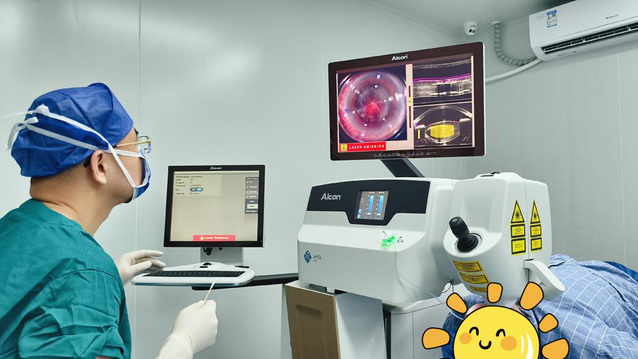 鲁红宇院长深知这一手术任务的艰巨性。王爷爷的高龄以及复杂的眼部情况无疑增加了手术的风险和难度。然而,面对老人及其家人对光明的渴望和对自己的信任,鲁红宇院长迎难而上,为王爷爷实施“飞秒激光辅助下白内障超声乳化吸除联合人工晶状体植入术”,也就是俗称的“飞白”手术。