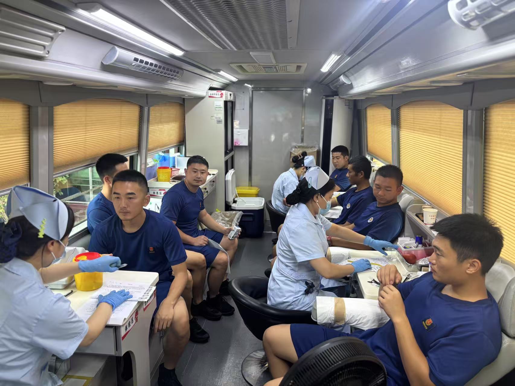 消防车驾驶员王敖率先走到队伍前列,眼神坚定:“出警救人要快,献血救人同样刻不容缓!”话音未落,他便大步登上献血车。“老百姓有需要,咱就得上!”四班班长黄金坐上采血椅,手臂刚扎好针,便朗声笑道,“得知暑期临床用血紧张,我们立即响应。这就像我们冲进火场一样,都是在救命!”