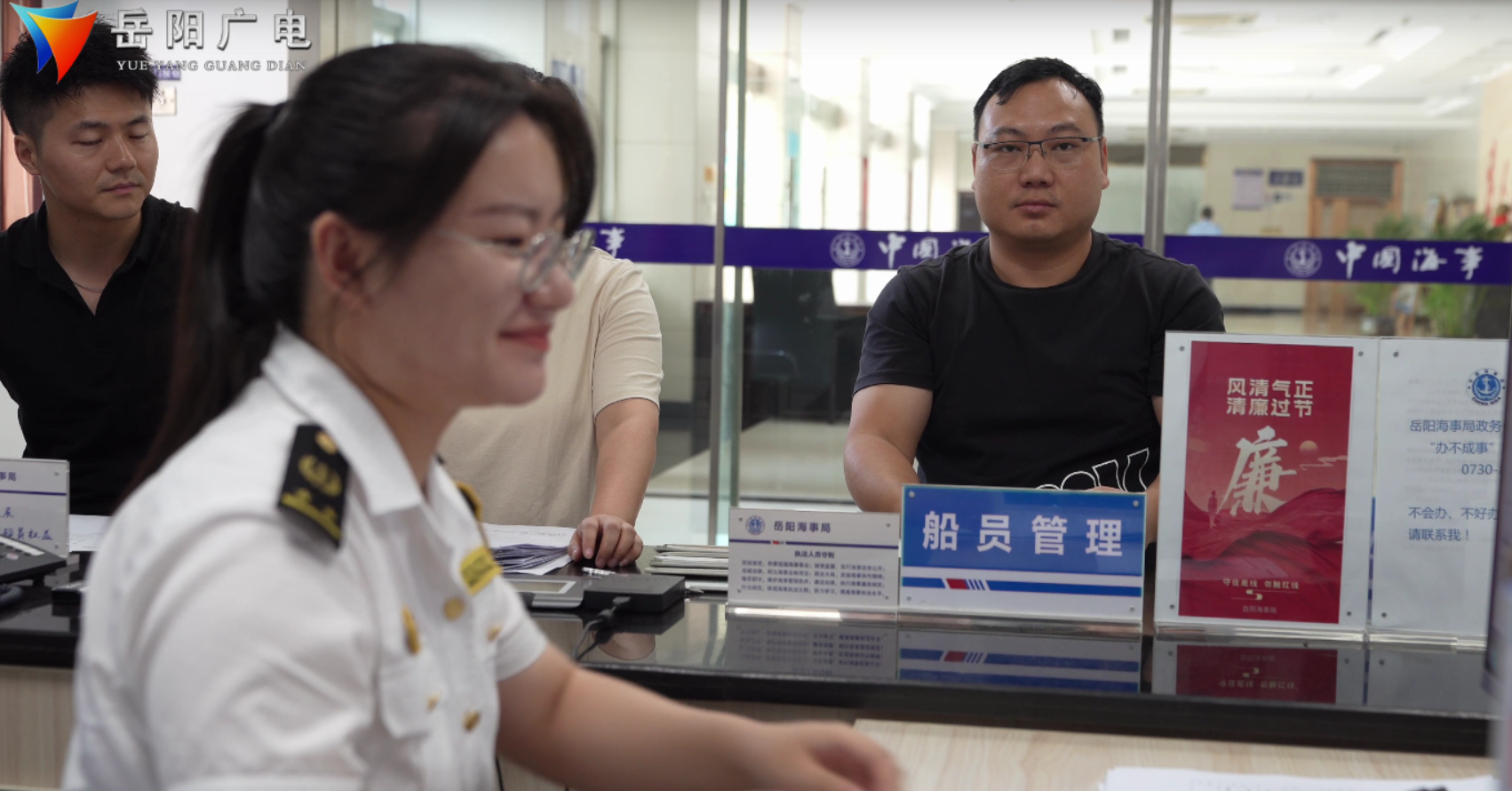岳阳海事局政务中心工作人员 方明烛:“目前,湖南省需要“洋山线合格证”的企业有5家,涉及船员200人,证件办理的时间从“天”压缩至“小时”,帮助船员节省路了时间和经济成本。”