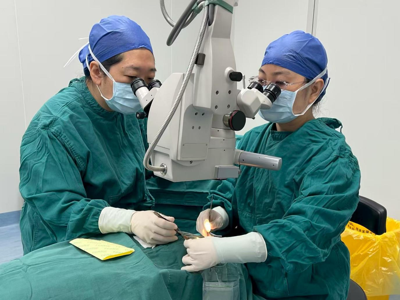 “传统单纯胬肉切除手术,虽能去除病变组织,但术后眼表缺损区域修复依赖自身缓慢生长,恢复时间长,复发率也较高,可达 30%-50%。” 王莹主任解释,三联手术通过“三步协同”,实现“清除病变 + 修复眼表 + 预防复发”多重目标。第一步“胬肉切除”,医生在显微镜下精准剥离并切除病变胬肉组织,包括侵入角膜的部分,确保彻底清除异常增生的纤维血管组织,避免残留病灶导致复发;第二步“自体结膜瓣移植”,从患者自身眼白部位取一小块健康结膜组织,移植到胬肉切除后的眼表缺损处。“自体组织生物相容性好,不会引发排斥反应,能快速与原有眼表组织融合,为眼表提供健康上皮细胞来源,重建眼表屏障功能;第三步 “羊膜覆盖”,在移植的结膜瓣表面覆盖一层特殊处理的羊膜。羊膜是天然生物材料,含多种生长因子,能减少炎症反应、促进上皮细胞再生,还能保护移植组织、防止粘连,为结膜瓣生长提供良好“土壤”,进一步降低感染和瘢痕形成风险。