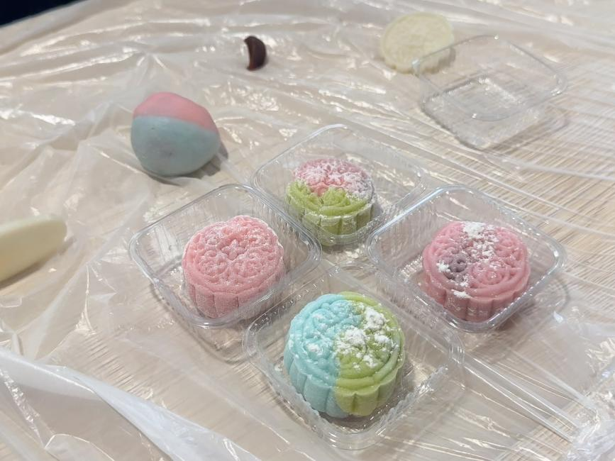 揉捏饼皮、包裹馅料、压模定型……活动现场,家长和孩子们在老师的耐心指导下,一起动手制作象征团圆的传统月饼。小手和大手共同配合,轻轻揉捏饼皮成团,小心翼翼地将馅料包裹其中,再放入雕花模具中轻轻一压、缓缓脱模,一个个印有吉祥、中秋字样的月饼便在盘中悄然绽放。指尖传递的不仅是传承千年的非遗技艺,更是亲子之间的温暖与默契。当一个个饱含心意的月饼在托盘中整齐排列,与孩子们灿烂的笑脸构成这个秋天最动人的画面。