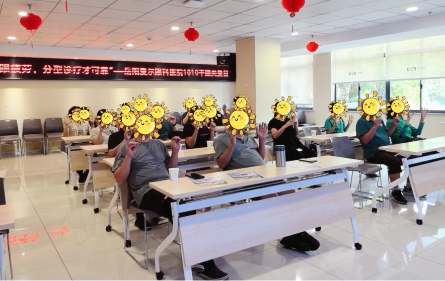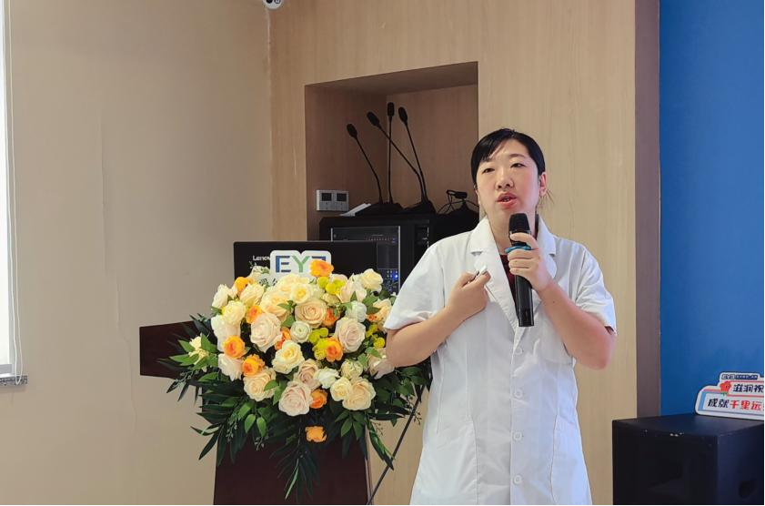 互动教学环节,医护人员示范“爱尔眨眼操”,全场跟练。王莹主任指导动作:“每天三次,每次一分钟,能改善泪膜稳定性,是爱尔自 2020年起倡导的‘免费良方’。”