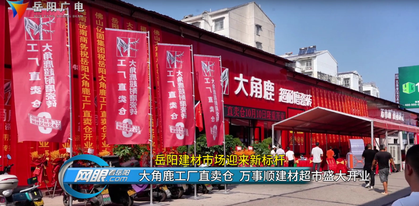 岳阳广电全媒体讯 记者(李博)10月10日,位于广福陶瓷市场的大角鹿工厂直卖仓、万事顺建材超市正式开门迎客。8000多平米的建材超市不仅为岳阳市及周边地区的消费者带来了“工厂价”选购超耐磨瓷砖的全新渠道,更标志着一个集品牌直供与一站式购物于一体的大型建材购物中心已然成型。