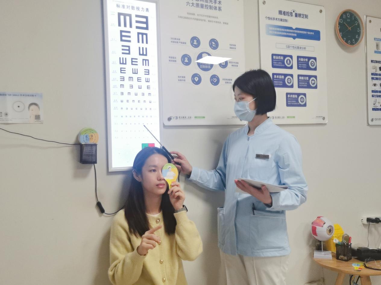 小宜的近视度数不算低,左眼425度近视伴随50度散光,右眼550度近视叠加50度散光。“从初中第一次戴上框架镜开始,就再也没能摆脱它。”小宜回忆,因为眼睛敏感,13年来大部分时间都依赖框架镜,一旦取下就视物模糊,连走路都缺乏安全感。偶尔想精致一点戴隐形眼镜出门,却总因长时间佩戴后眼睛干涩不适而早早取下。作为门诊护士,工作中频繁的视力需求让眼镜成了她形影不离的“伙伴”,也让她暗自萌生了“摘镜”的想法。