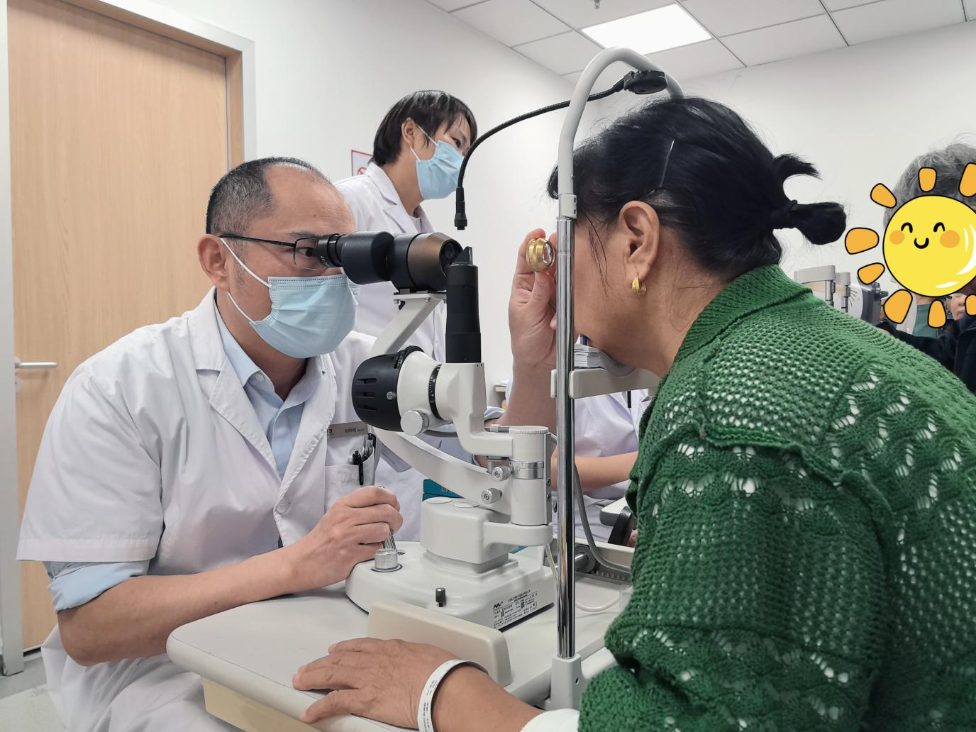 (图三:刘祥明主任为齐女士检查眼睛中)