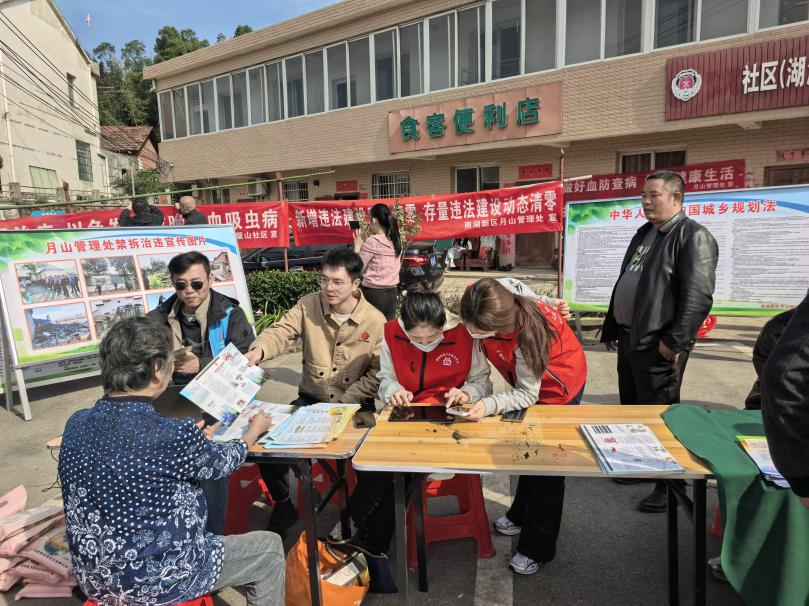 本次宣传聚焦民生关切,工作人员通过设立宣传展板、咨询台、发放宣传折页、现场讲解等方式,向居民详细普及了违法建设的认定标准、法律后果及其对公共安全、生态环境和土地资源的严重危害。针对月山片区特点,宣传人员重点对居民自建房安全规范、临时建筑审批流程以及严禁占用耕地建房等常见问题进行了针对性解读,让群众清晰认识到“什么是违建”“为什么不能建”。