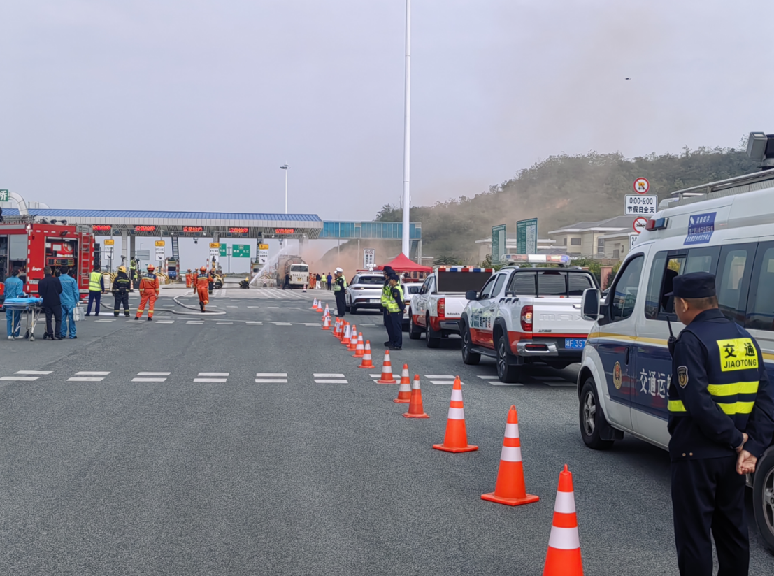 为提升岳阳高速公路突发事件的联动处置能力,10月29日,岳阳市应急管理局联合市交通运输综合行政执法支队、省公安厅交通管理总队高速公路交通管理二支队、省高速公路集团有限公司岳阳分公司、市消防救援支队、市生态环境保护综合行政执法支队等单位,在城陵矶高速胥家桥收费站开展了一场应急救援演练。