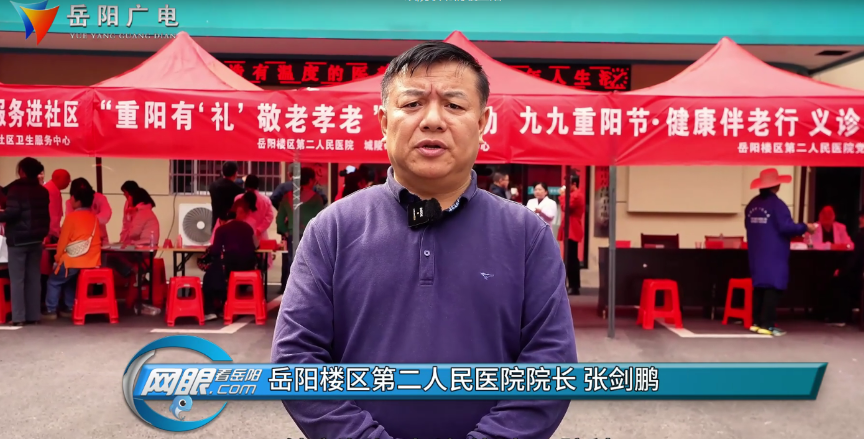 岳阳楼区第二人民医院院长 张剑鹏:此次活动将为老年人提供家庭医生签约、健康咨询,内科外科口腔科等多方面的健康服务。