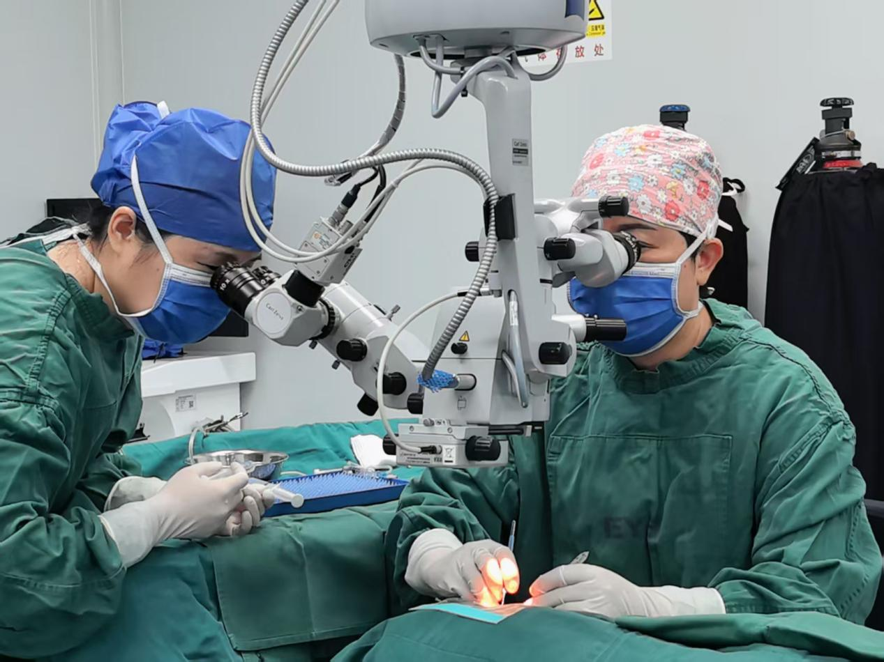 (图二:许威院长与丰主任为汪女士进行ICL晶体植入术)