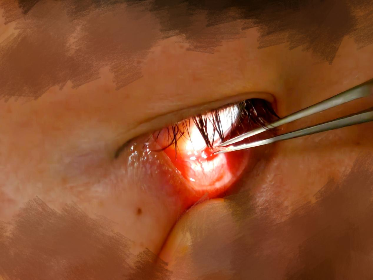 右眼白色异物暗藏数年,术后揪出手术残留线头
