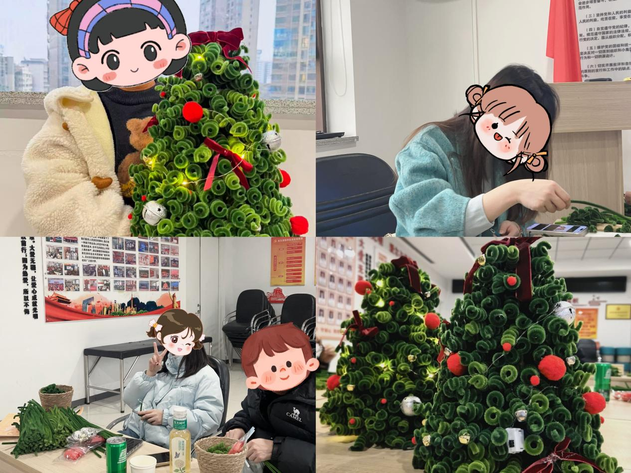 会员们迅速投入创作。大家时而低头专注弯折扭扭棒,时而与身边人交流创作思路,时而为彼此的创意点赞。红色的扭扭棒化作圣诞蝴蝶结,绿色的扭扭棒堆叠成层层枝叶,金色的小铃铛、星星,闪亮的彩球点缀其间,原本普通的材料在指尖流转中逐渐成型,变成一棵棵造型独特、充满心意的圣诞树。孩子们更是发挥天马行空的想象力,制作出卡通化、个性化的作品,不时举起半成品向家长和医护人员展示,稚嫩的笑声回荡在活动现场。