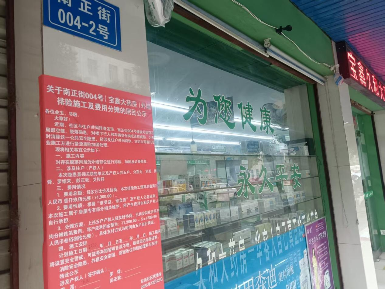 社区党组织充分发挥党建引领作用,第一时间组织现场勘查,并牵头召集相关业主协商。在社区引导下,涉及的五户业主迅速达成共识,通过居民自治方式,共同议定排险方案并平均分摊全部费用,高效完成了隐患处置。