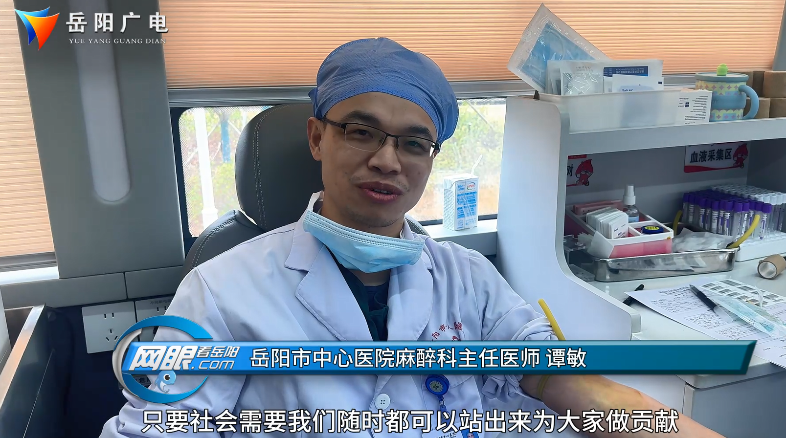 岳阳市中心医院麻醉科主任医师 谭敏:这个献血,(对于)我们医护人员来说是一件义不容辞的事情,只要社会需要,我们随时都可以站出来为大家做贡献。