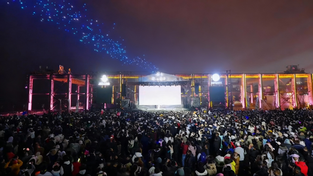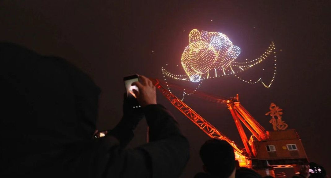 (洞庭南路岳阳港工业遗址公园举办“洞庭渔火季无人机表演活动”)