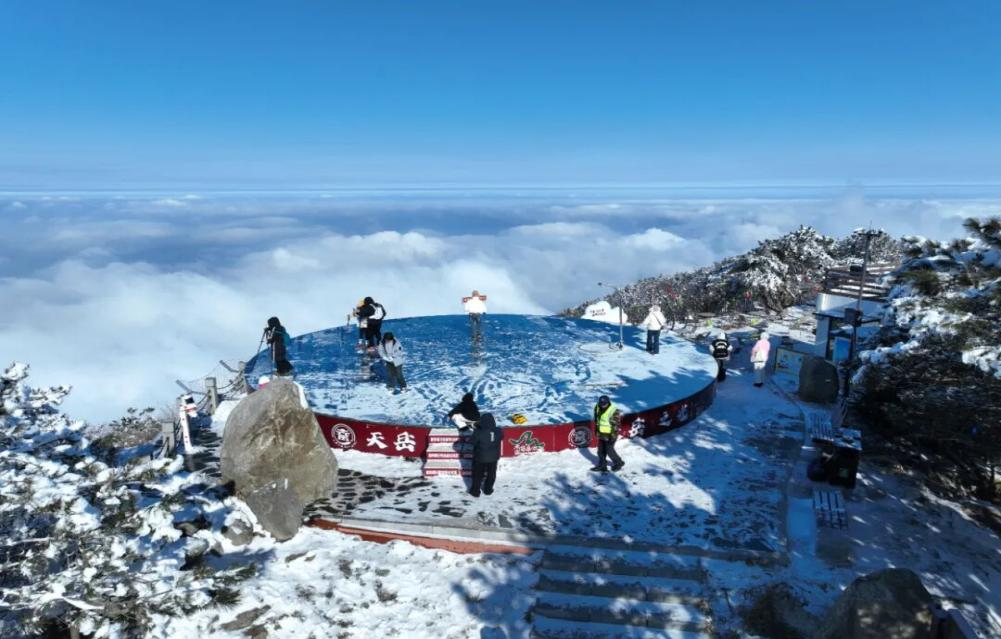 (天岳幕阜山游客共赏岳阳2026第一场雪)
