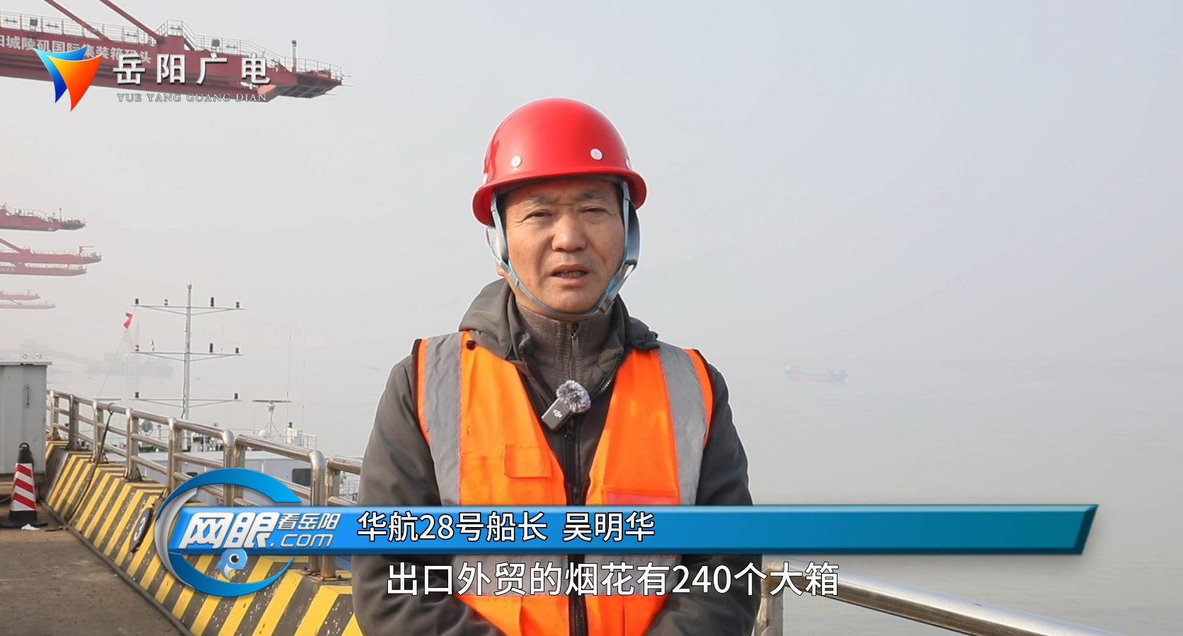 华航28号船长 吴明华:“我们本航次运输的是从长沙浏阳,出口外贸的烟花,有240个大箱。因为在城陵矶码头还是很便捷,箱子很快上到我们船上,预计在三天之后可以运往上海洋山港,为我们2026年带来一个好兆头”