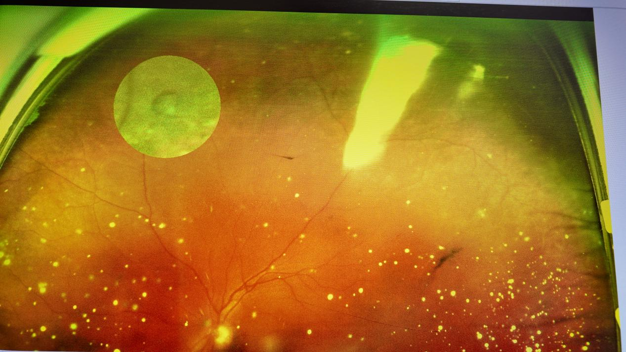 考虑到视网膜裂孔若拖延可能引发视网膜脱离,甚至导致失明,刘祥明主任建议张先生立即接受激光治疗。随后,张先生在表面麻醉下完成了左眼视网膜光凝治疗,术中可见玻璃体血性混浊、星状变性及裂孔周围局部视网膜浅脱离,整个治疗过程顺利完成。
