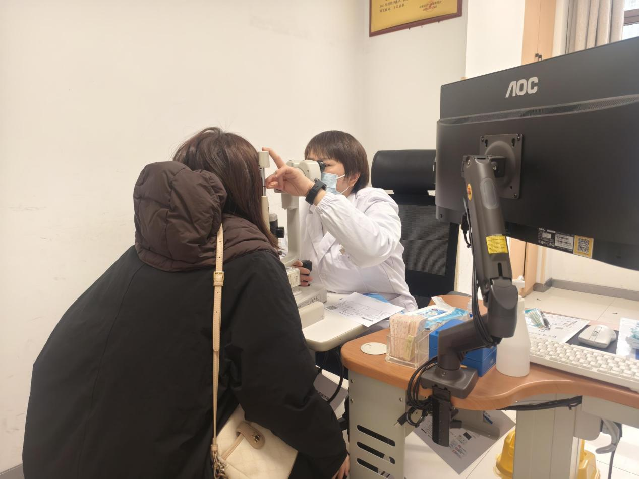 张玉主任为李女士进行眼睛检查