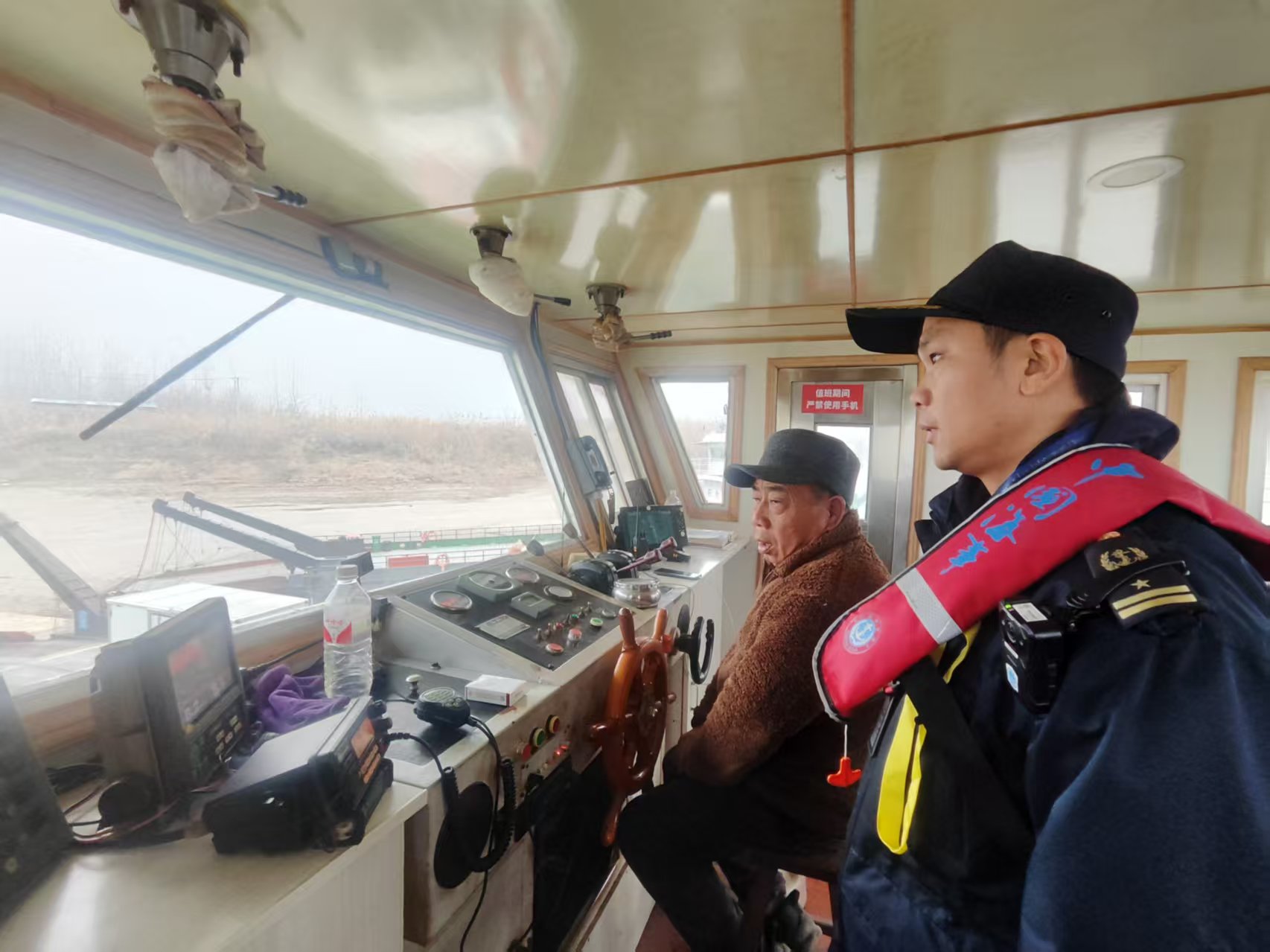 依托信息化手段,临湘海事处、洪湖海事处实现了全方位、全天候的立体监控。临湘大桥执法大队利用智管平台对桥区、重点航段实施“电子盯屏”,实时掌握船舶动态,精准发布预警提示,并派员登轮进行面对面宣教。洪湖市标大队则采取“白天现场+夜间电子”模式,白天检查码头船舶防冻防滑措施,夜间通过甚高频、短信平台向航行船舶发送安全提醒,确保预警信息传递到位,防范措施落到实处。