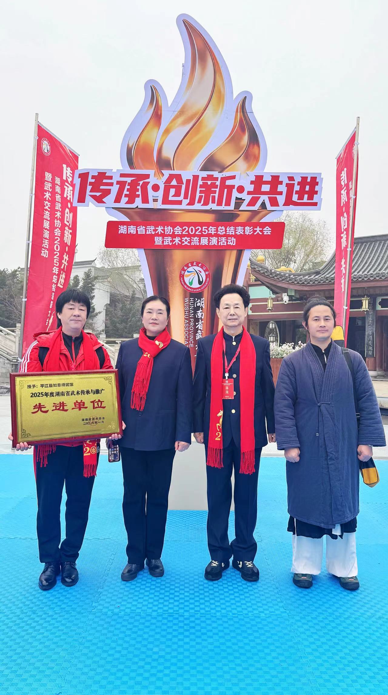 岳阳广电全媒体讯 1月18日,“传承·创新·共进——湖南省武术协会2025年总结表彰大会暨武术交流展演活动”在长沙橘子洲江天暮雪文化园圆满落幕。大会系统回顾了过去一年全省武术工作的丰硕成果,隆重表彰了一批为武术事业做出突出贡献的先进集体与个人,并完成了协会相关章程修订与人事调整,为未来发展凝聚共识、积蓄力量。