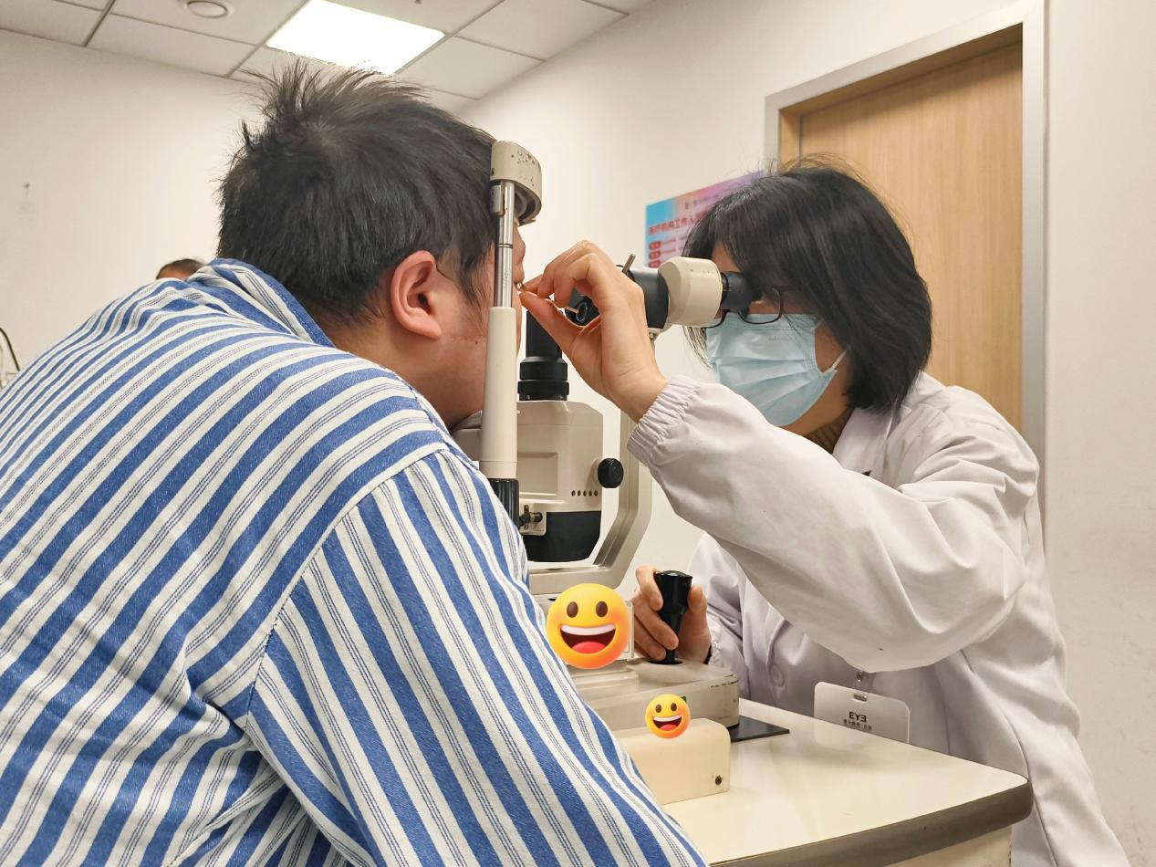 (图一:黄艾姣医生为万同学检查眼睛)