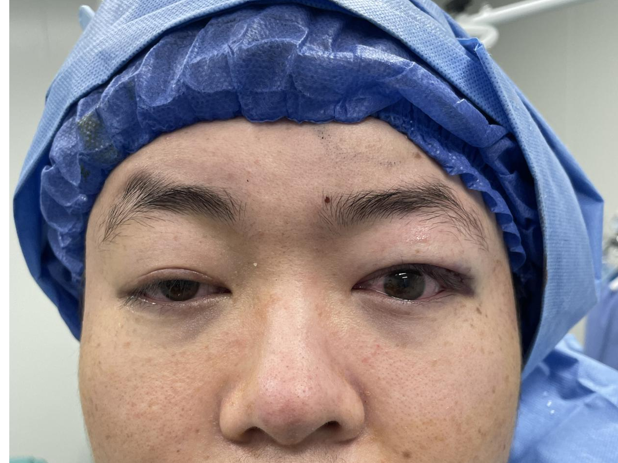 结合万同学的年龄、病情和面部情况,王莹主任及医护团队经过全面评估,为他制定了个性化手术方案——左眼上睑下垂矫正+重睑联合手术,采用局部麻醉,尽量减少手术创伤,帮助术后更好恢复。