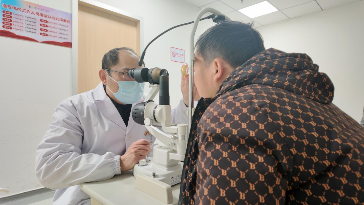 (图一:刘祥明主任为邹先生检查眼睛中)