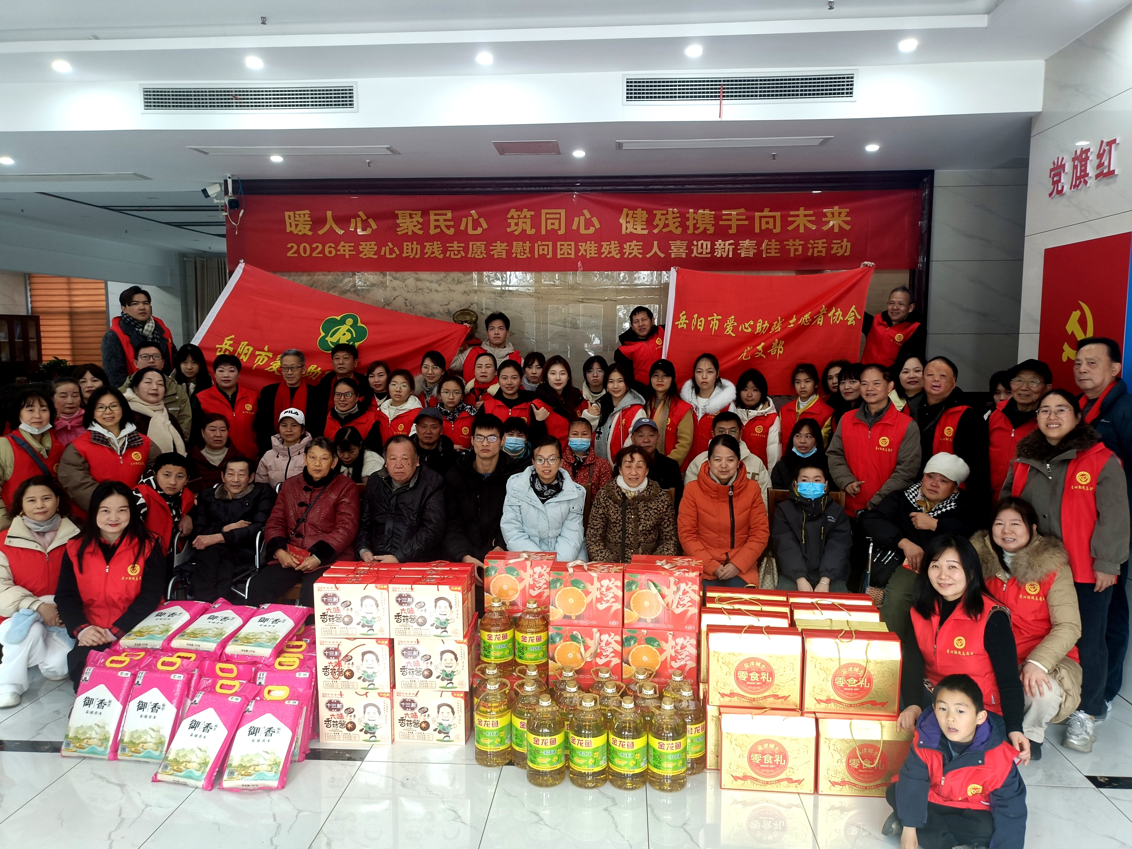 扶残帮困春风暖,送福迎祥爱意浓。1月31日上午,“暖人心聚民心筑同心,健残携手向未来”暨2026年岳阳市爱心助残志愿者慰问困难残疾人喜迎新春佳节活动,在岳阳江南物流有限公司浓情举行。活动旨在落实岳阳市委社会工作部和市志愿服务联合会“两节”走访慰问部署,为18名特别困难残疾人及其家庭送去新春关怀,助其度过温暖祥和的马年新春,以实际行动提升特殊群体获得感、幸福感、安全感,为全国文明城市建设添砖加瓦。