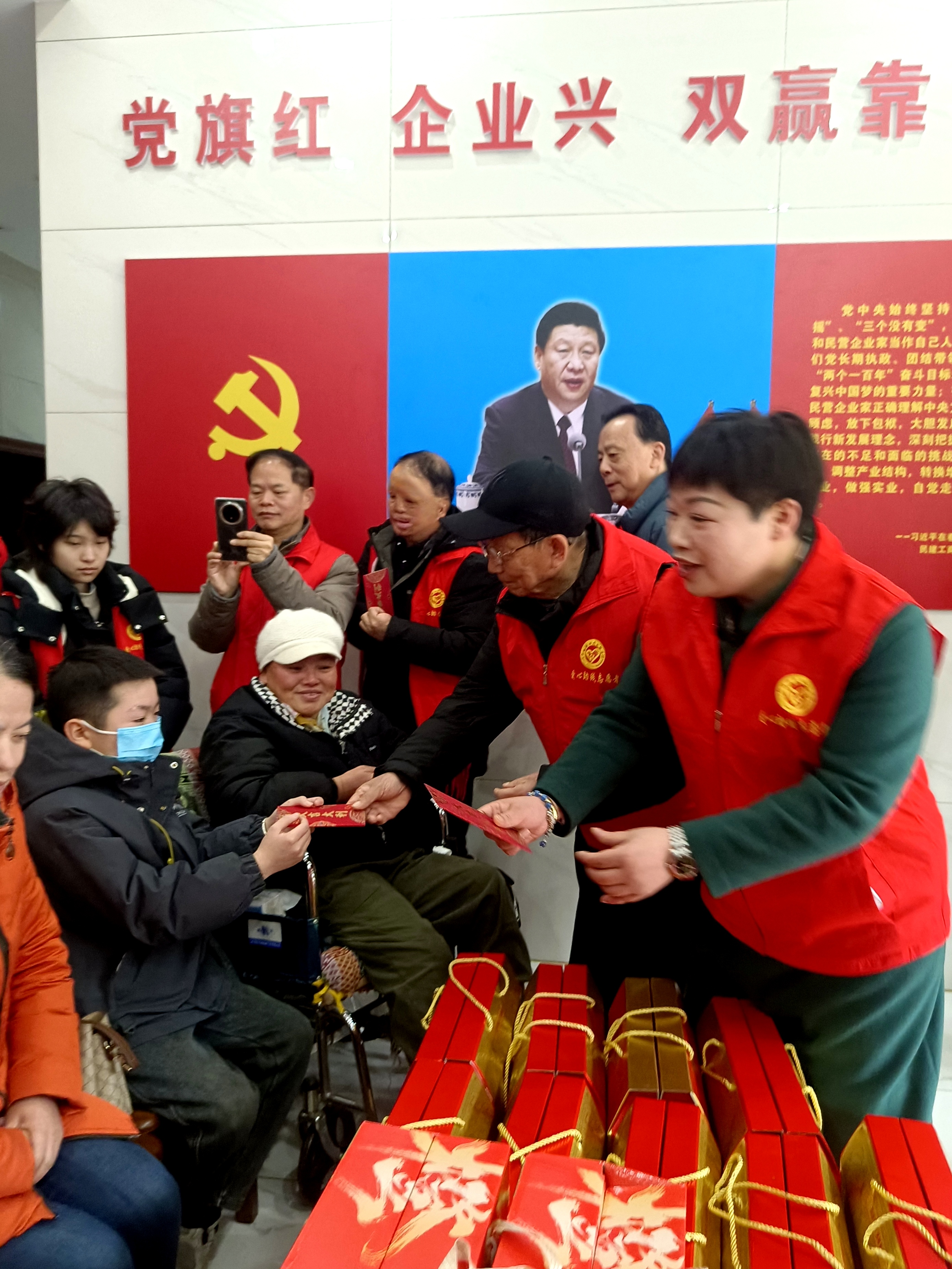 全国道德模范、岳阳市志愿服务联合会会长李国武,岳阳市爱心助残志愿者协会名誉会长姚平出席活动。活动由市爱心助残志愿者协会党支部书记岳卓群、会长范海梅统筹,常务副会长孙学文、秘书长钟清带领张文芳、叶泽英张文芳、叶泽英、胡亚、姚秀成、胥湘如、李际东、熊湘毅、方芳、王小英等30名志愿者骨干参与,现场为18名困难残疾人逐一发放慰问物资——既有500元至1000元不等的现金慰问款,也有大米、食用油、十三村香菇酱、新春大礼包、时令水果等年货,把实实在在的温暖送到残友手中。