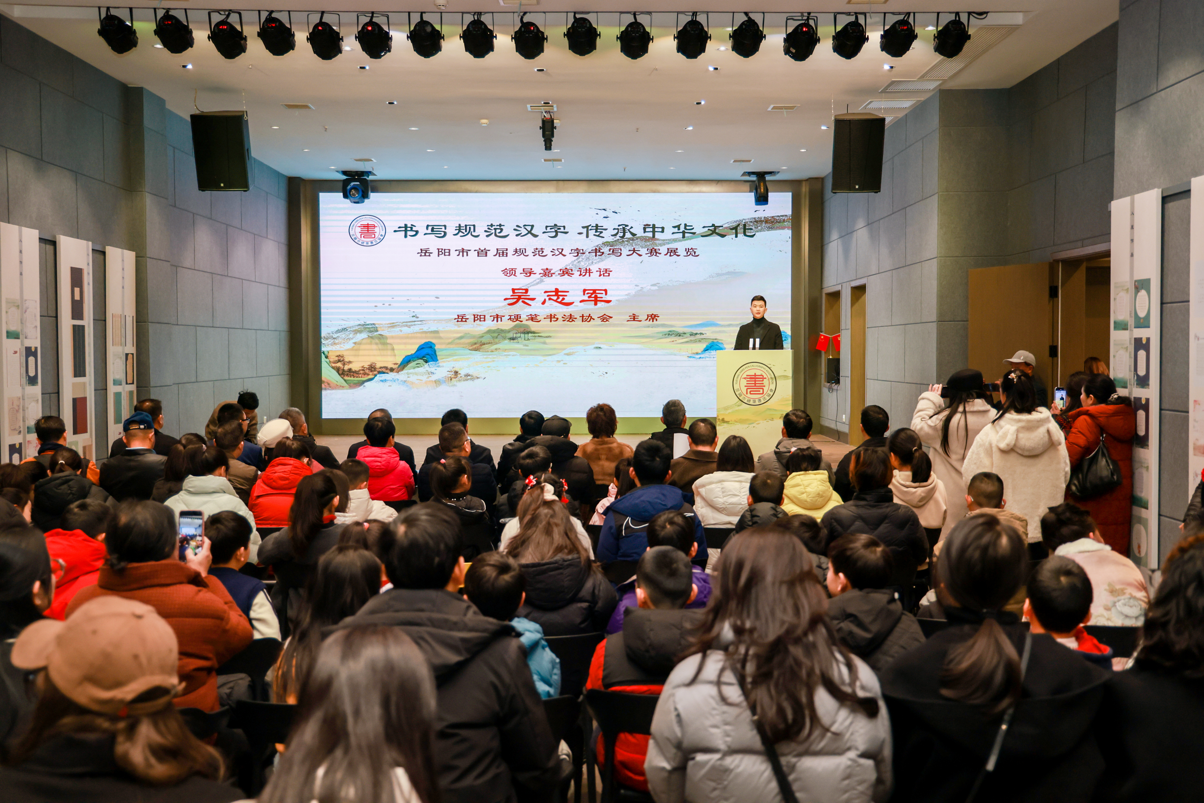 岳阳广电全媒体讯 2月1日上午,由市硬笔书法协会主办的岳阳市首届规范汉字书写大赛颁奖典礼暨优秀作品展在岳阳市今日艺术教育隆重开幕。岳阳市硬笔书法协会主席吴志军致辞,岳阳市文联党组书记李冈作重要讲话。