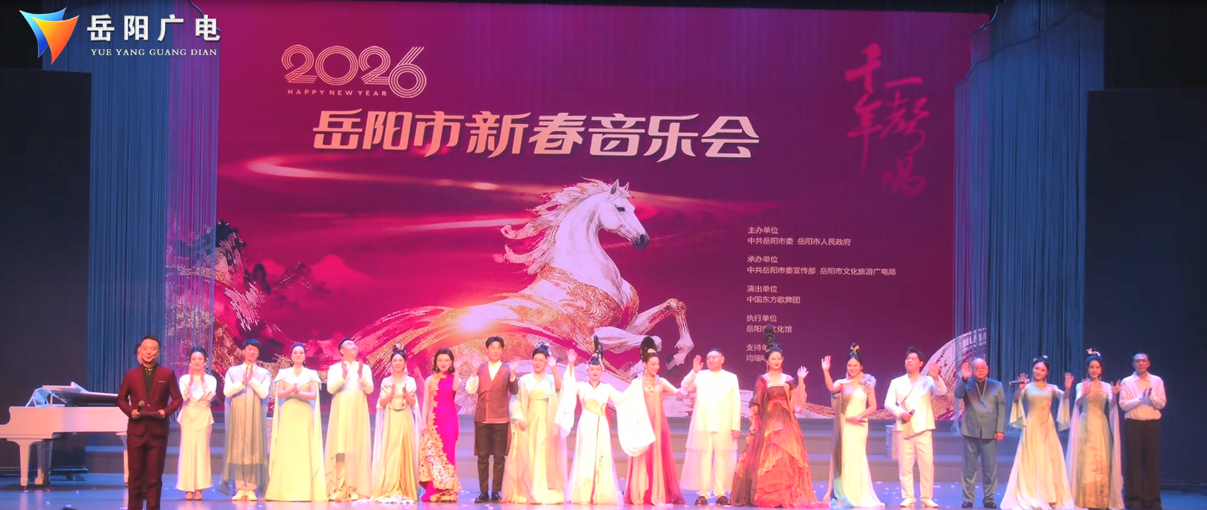 岳阳广电全媒体讯(记者 凌云志)2月10日晚,“2026 年岳阳市新年音乐会——《千年一声唱》国风音乐会”在岳阳文化艺术会展中心大剧场精彩上演。近千名观众共赴一场诗词与音符交融,传统与潮流碰撞的国风盛宴,在悠扬乐声中喜迎马年新春。本次音乐会由中共岳阳市委、岳阳市人民政府主办,市委宣传部、市文化旅游广电局承办,特邀国家级演艺文化集团——中国东方演艺集团倾情呈现。