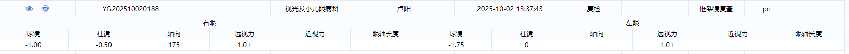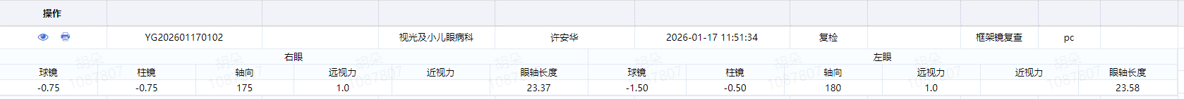 令人惊喜的结果出现在2026年1月17日的最近一次复查中。验光结果显示,小曹的双眼近视度数均降低了25度。从一度持续增长,到如今度数的切实回退,这一“逆转”趋势清晰印证了坚持科学、综合、个性化防控的有效性。