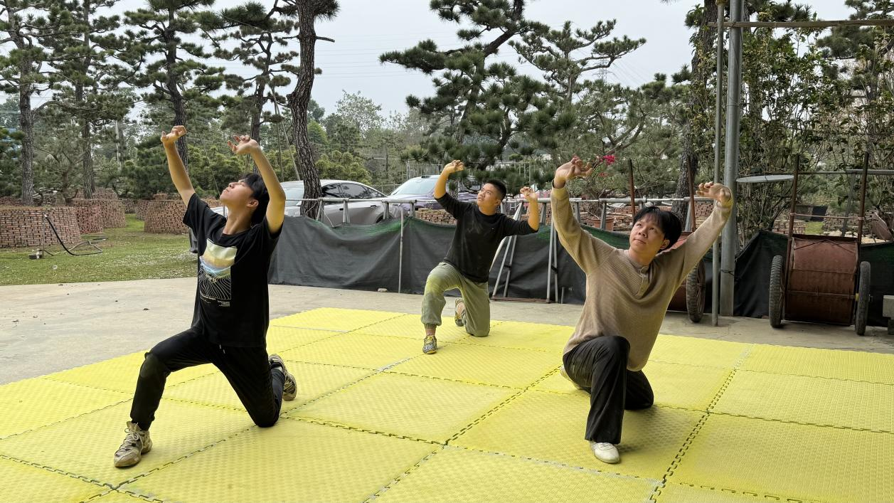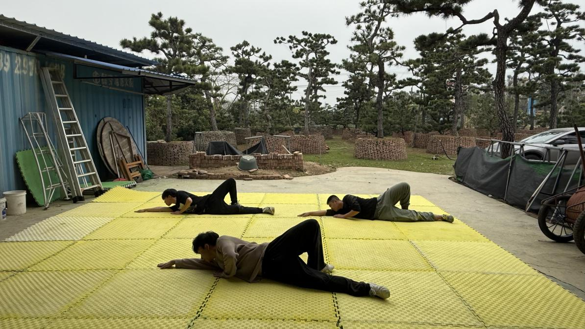随后依次登台展演龟牛拳。何明骏自幼习武、功底扎实,演练时静如灵龟蛰伏、动若神牛奔跃,劲力沉稳雄浑、招式连贯流畅,尽显龟牛拳古朴刚健的独特神韵。严柏杰、谭子濠两位同学虽尚在学习阶段,演练中略显生涩、劲力稍欠贯通,但态度认真、精气神饱满,展现出扎实的学习态度与良好的习武基础。