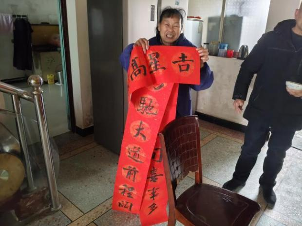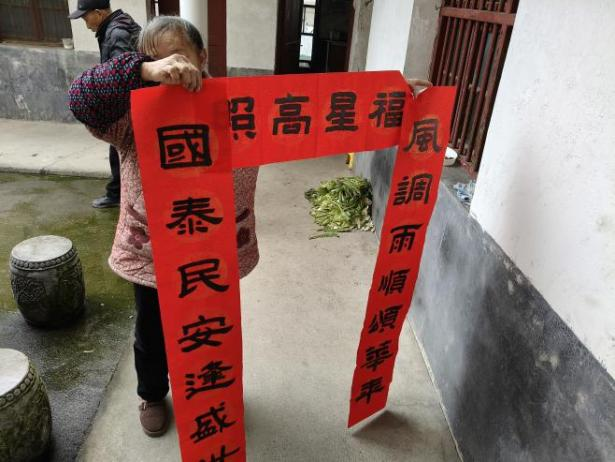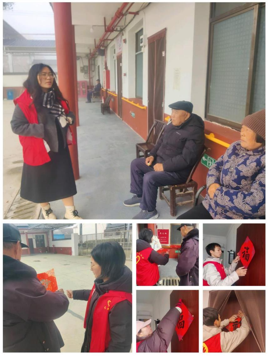 在河市镇敬老院,志愿者们为老人们贴春联、送祝福。一幅幅红彤彤的春联贴上门框,洋溢着喜庆的节日气氛。同时,各村(社区)志愿者走村入户,将春联送到村民家中,将祝福送到他们的心坎上。
