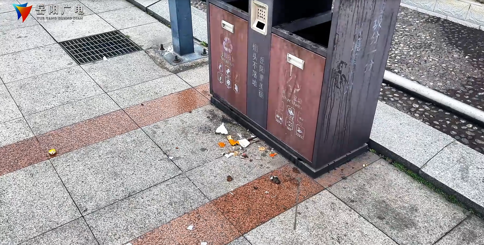 岳阳广电全媒体讯(记者 胡菁 实习 杨京霖)近日,记者在市区部分街道走访时发现,有市民因疏忽大意,垃圾不慎遗落在垃圾桶周边,既影响街道环境整洁,也给保洁人员增加了额外工作量。