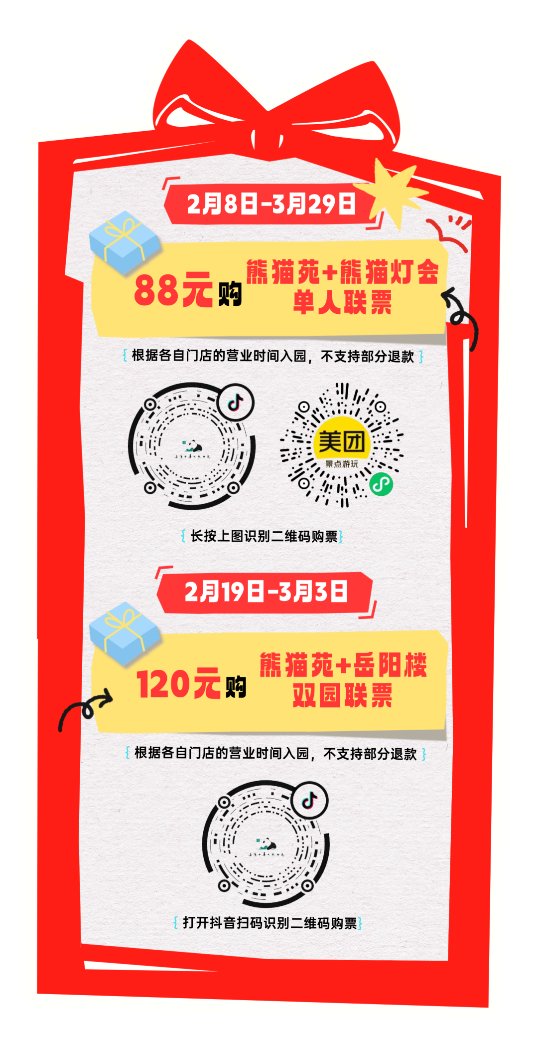 直接冲岳阳楼 + 中华大熊猫苑联票