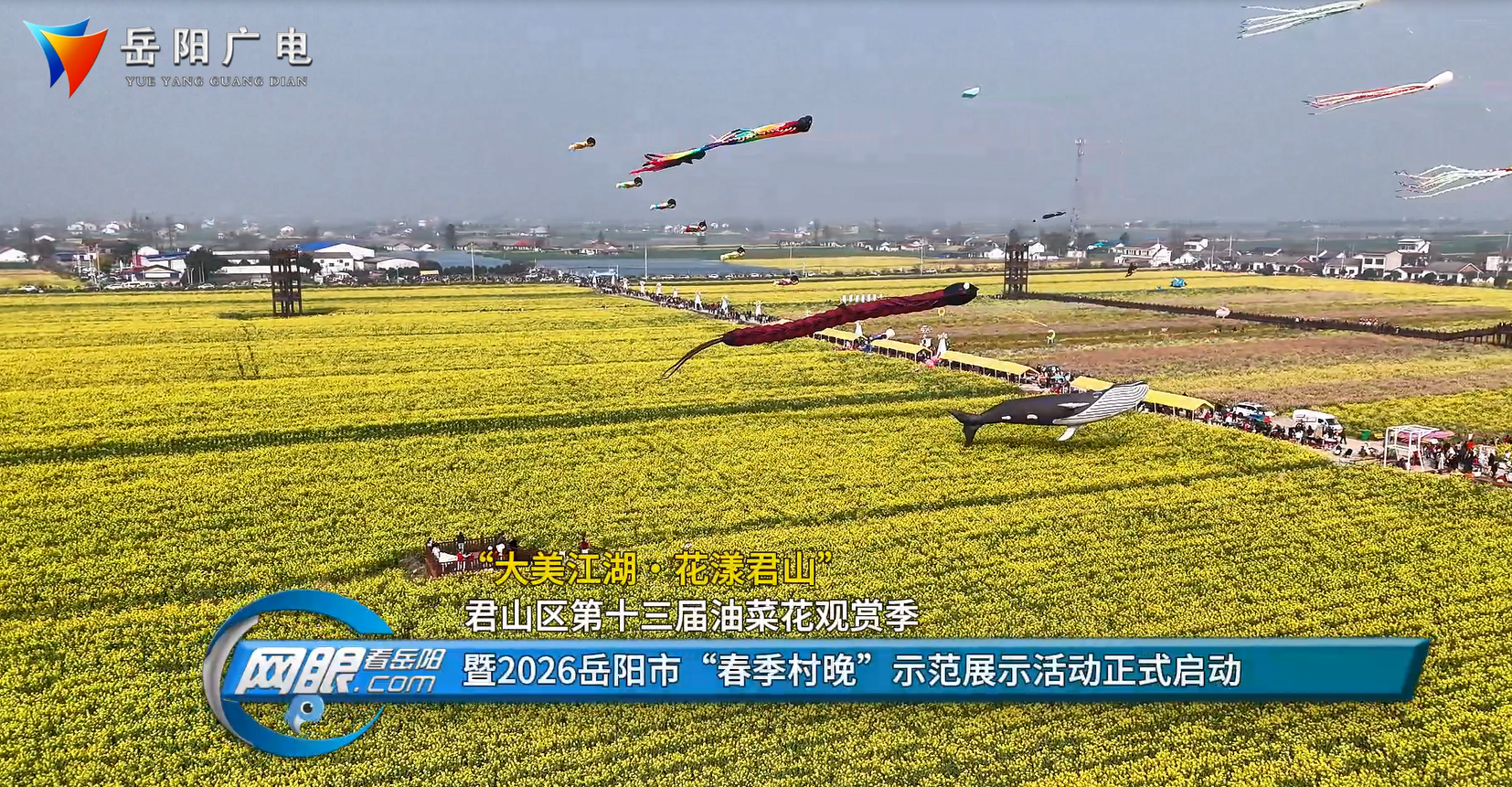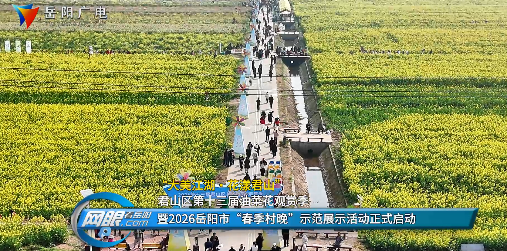岳阳广电全媒体讯(记者 向雅 李亮)3月12日,“大美江湖・花漾君山”君山区第十三届油菜花观赏季暨2026岳阳市“春季村晚”示范展示活动,在良心堡镇福星村金色花海广场正式启幕。