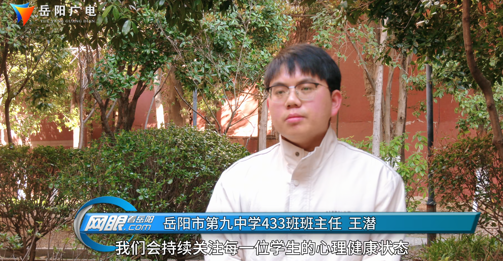 岳阳市第九中学433班班主任 王潜:我们会持续关注每一位学生的心理健康状态,让他们在班级当中感受到被关注、被理解,建立起家庭、学校、医院三方联动的心理健康服务桥梁,让每一位孩子都能够健康、快乐成长,做到全面发展。