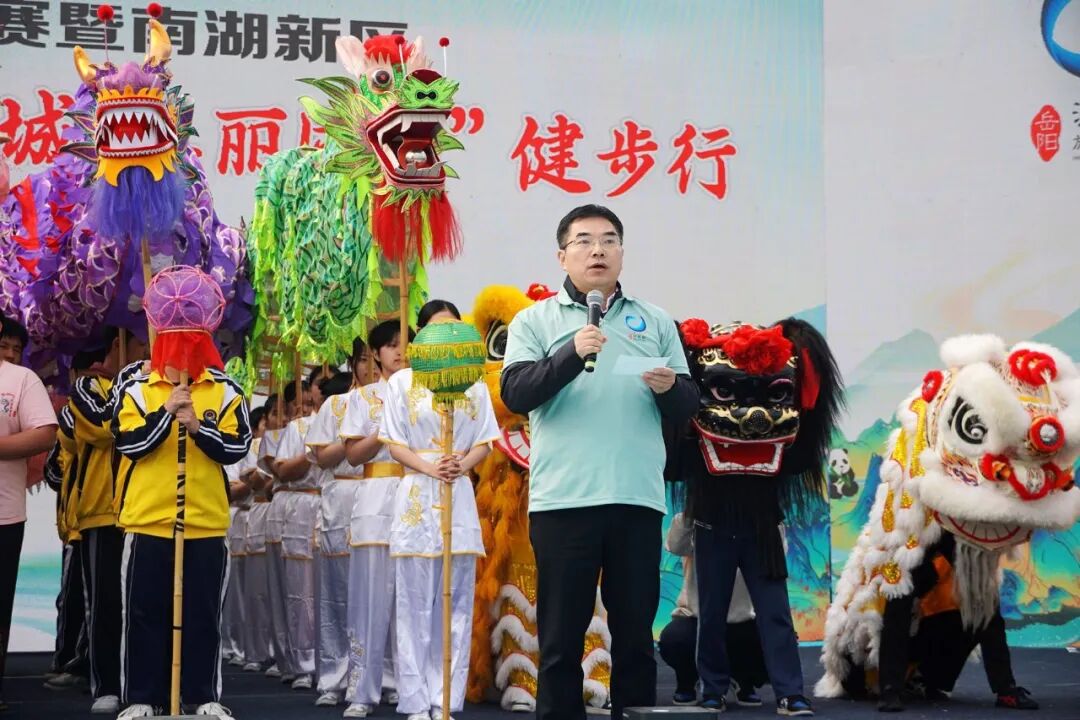 王文华在致辞中表示,此次健步行既是践行习总书记“守护好一江碧水”殷殷嘱托的生动实践、也是推动生态保护与全民健身相互融合的具体行动。希望南湖新区始终坚守生态底线,持续擦亮生态名片,不断把生态优势转化为发展优势,让绿色成为美丽南湖最动人的底色。