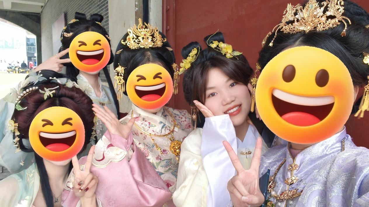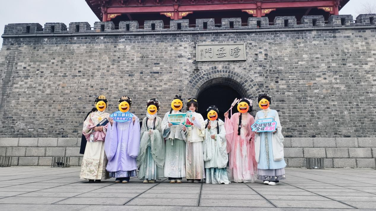 活动现场早早布置得古韵十足,处处透着雅致的国潮氛围。专业化妆师团队提前就位,备好全套古典妆造工具,细心为每一位会员打造专属古风造型:细描温婉远山眉,轻点柔润绛唇色,搭配精致簪花、灵动步摇,再披上飘逸素雅的汉服裙摆。原本被眼镜遮挡的眉眼轮廓彻底舒展,会员们瞬间完成“古风变身”,温婉、大气、端庄少女轮番亮相,彼此笑着打量、互相夸赞,现场欢声笑语不断。大家结伴移步瞻岳门前,青瓦古建与汉服霓裳相映成趣,仿佛穿越千年国风画卷,青春朝气与古典韵味完美交融,氛围感直接拉满。