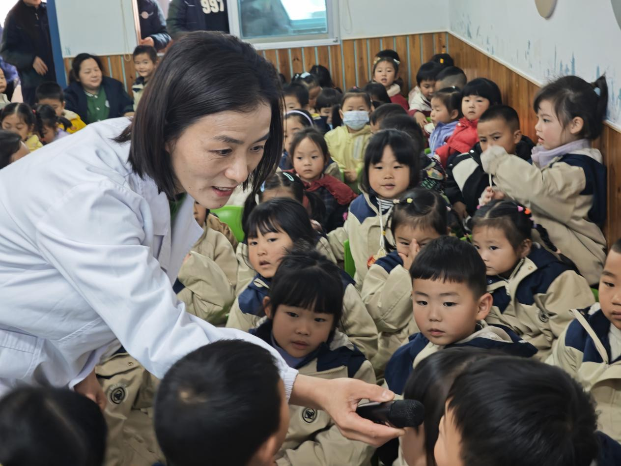 同一时间,博苑新东方幼儿园里则是一片童趣盎然。面对天真烂漫的幼儿,中医科护士长刘双双摇身一变,成了讲故事的人和做游戏的人。孩子们在趣味互动中认识了金银花、艾叶、陈皮这些身边的中草药,在欢声笑语里感受中医药文化的奇妙。一颗关于传统文化的种子,就这样不经意间落进了童心。