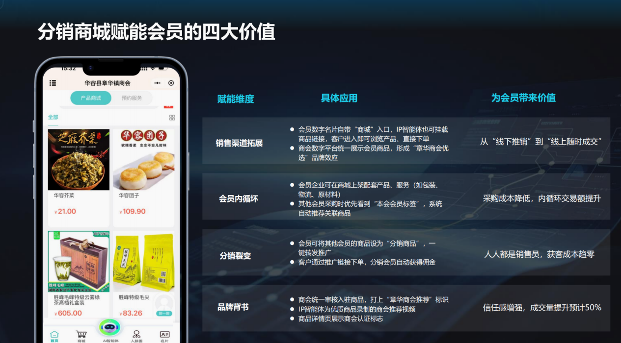 尤为特殊的是,为传统农业注入现代动能成章华镇的关键行动。本次大会发布的“章华镇商会AI智能体服务平台”致力于通过数字化工具,为农业经营主体提供市场分析、渠道对接、供应链管理等智能化服务,旨在破解信息壁垒,实现从“产什么卖什么”到“要什么产什么”的精准衔接,让“田园”与“市场”的链接更持久、更高效。