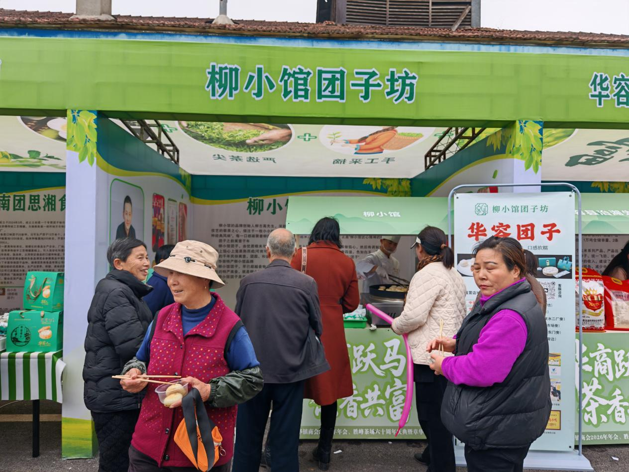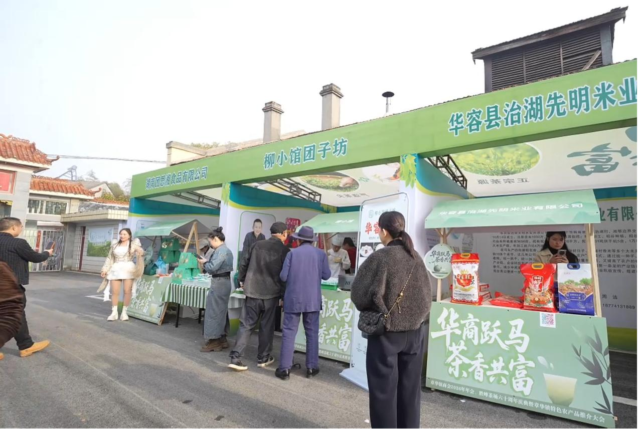 活动现场,茶场广场变身“章华风物”博览会。统一的视觉设计与“地标精品库”标识下,金黄诱人的凤形皱皮柑、晶莹饱满的治湖大米、高标准制作的明贡蜂蜜、酱香浓郁的琦香阁腊味、热气腾腾的柳小馆团子,与主场“胜峰茶叶”交相辉映。各展位前,来自省内外的客商、乡贤与本地群众品鉴问询、洽谈热烈,实现了从“单一产品推介”到“区域品牌整体展示”的转变。据统计,现场达成初步购销与合作意向近二十项,当天上午现场零售交易额即达2万余元,多位客商表达了建立长期供货渠道的意愿。